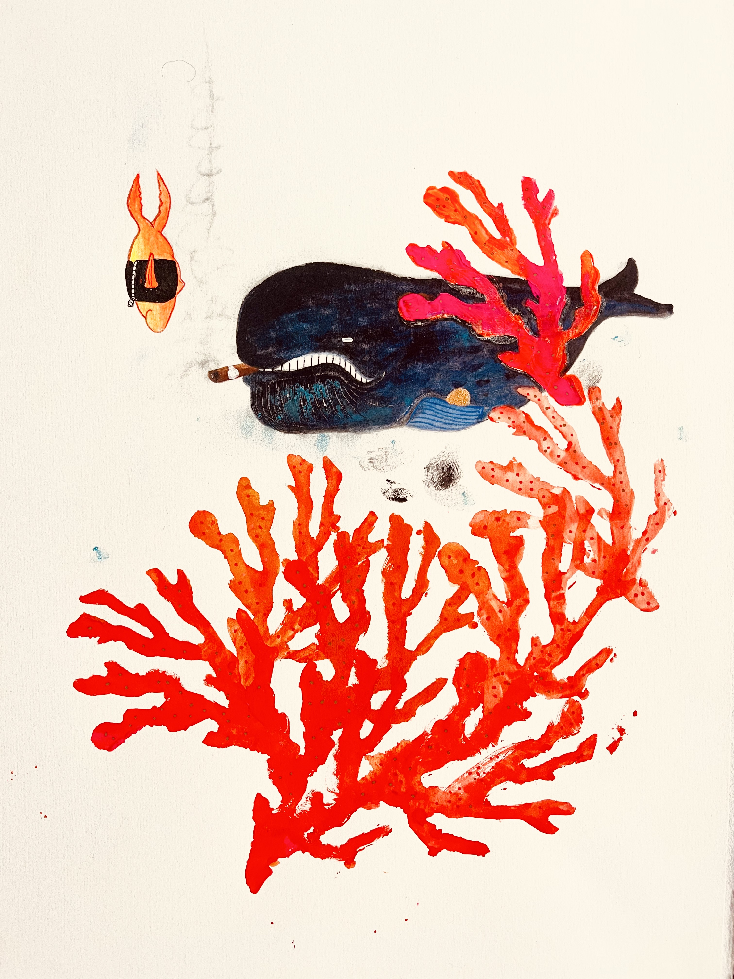 Goudvis met pijlstaartinktvis - Goldfish and squid